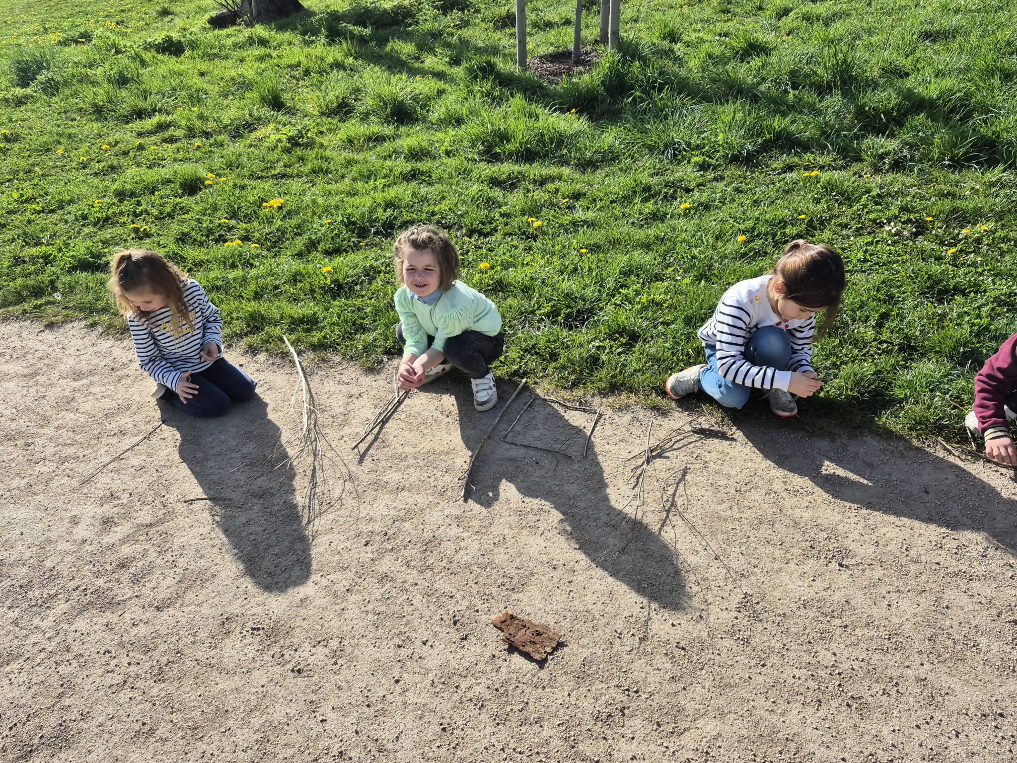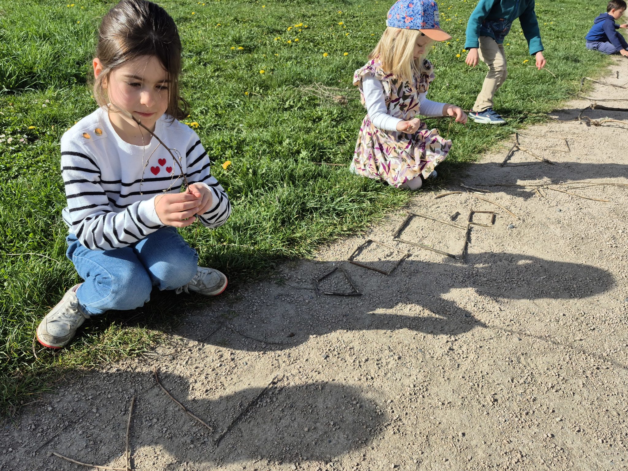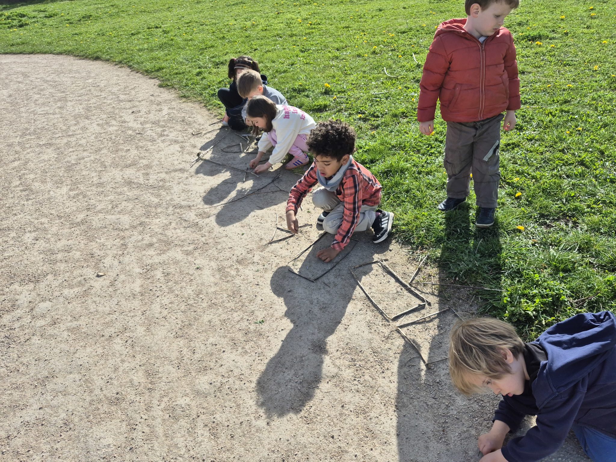 Les enfants ont travaillé en extérieur sur la journée. Au programme, ateliers de géométrie, de phonologie et créatif. Pause tisane avec les plantes collectées dans notre jardin. Jeu de topologie: « les explorateurs, les géographes et les documentalistes ». Pique nique tiré du sac à midi. Enfin, chasse au trésor avant de retrouver l’école.