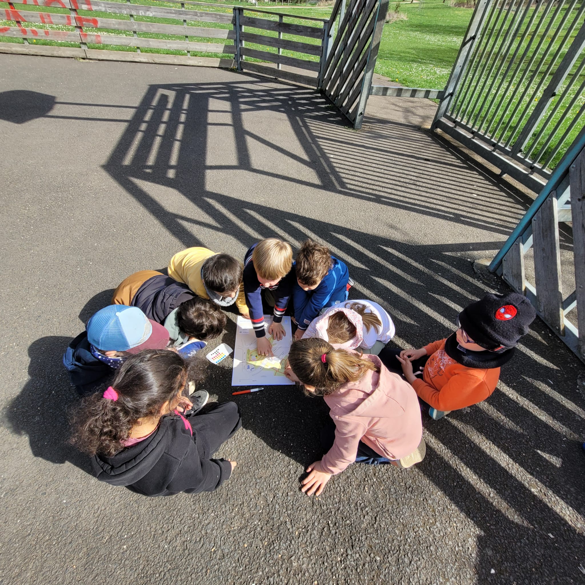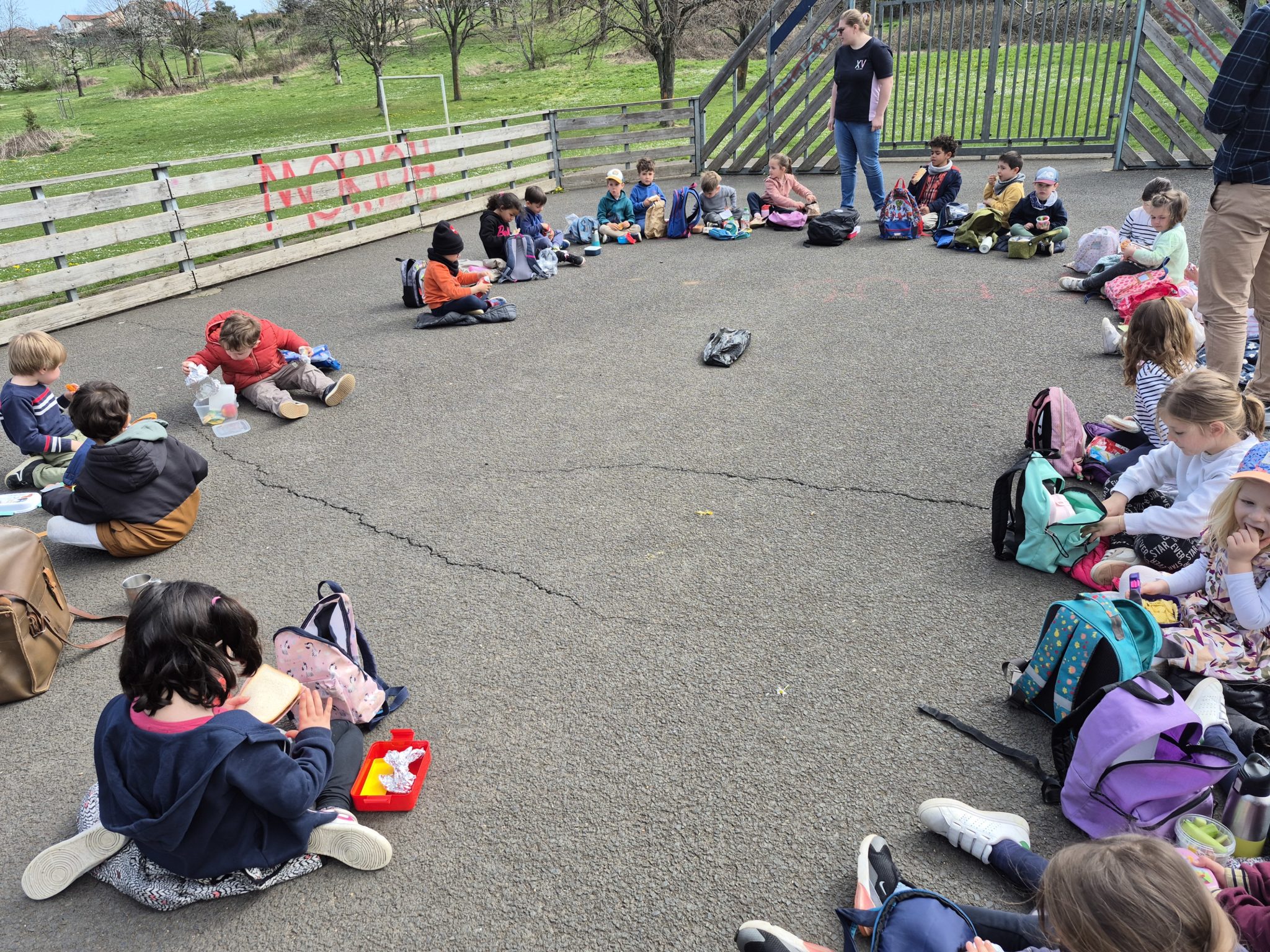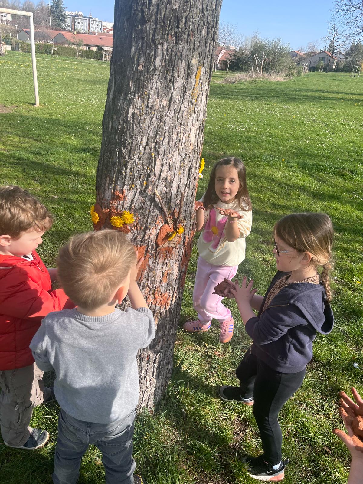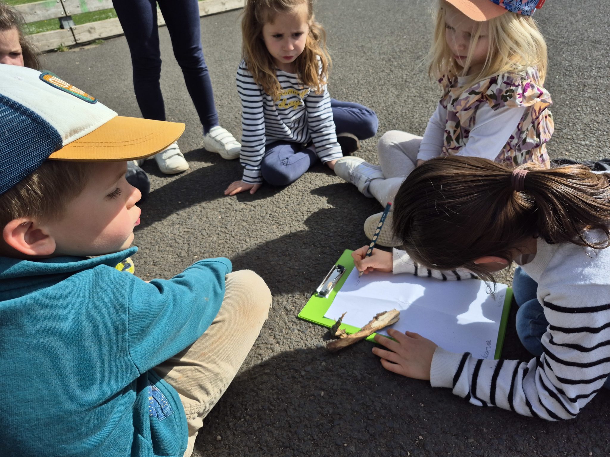 Les enfants ont travaillé en extérieur sur la journée. Au programme, ateliers de géométrie, de phonologie et créatif. Pause tisane avec les plantes collectées dans notre jardin. Jeu de topologie: « les explorateurs, les géographes et les documentalistes ». Pique nique tiré du sac à midi. Enfin, chasse au trésor avant de retrouver l’école.