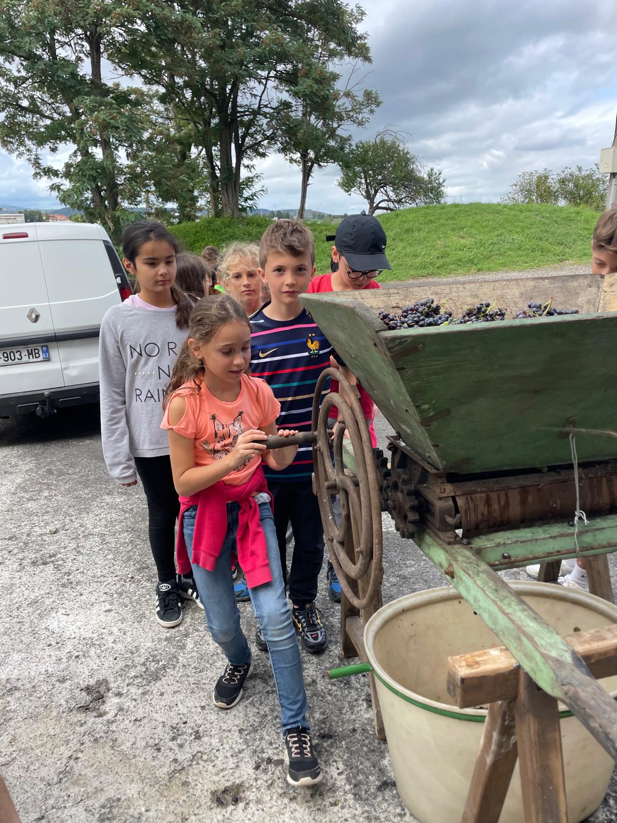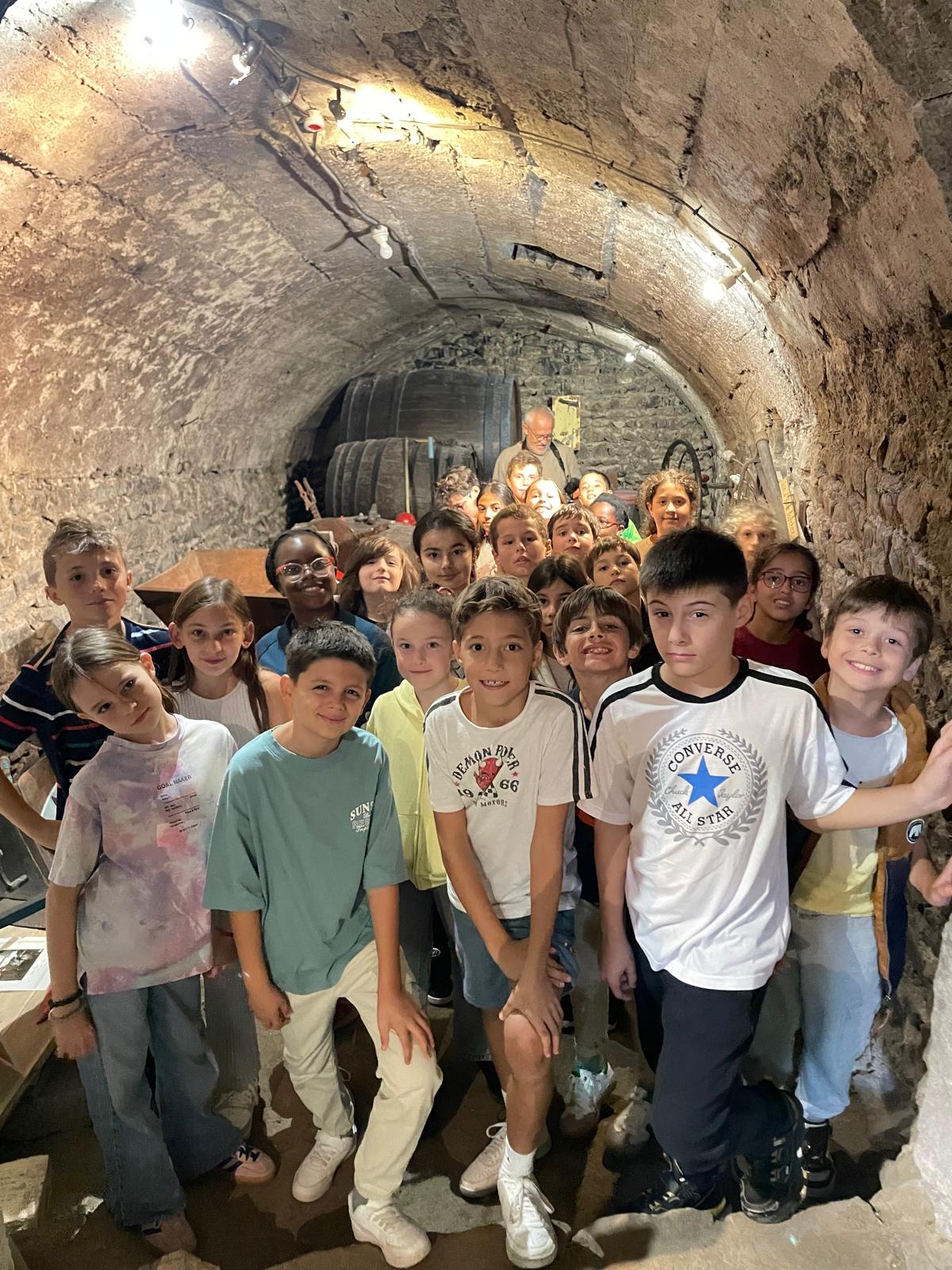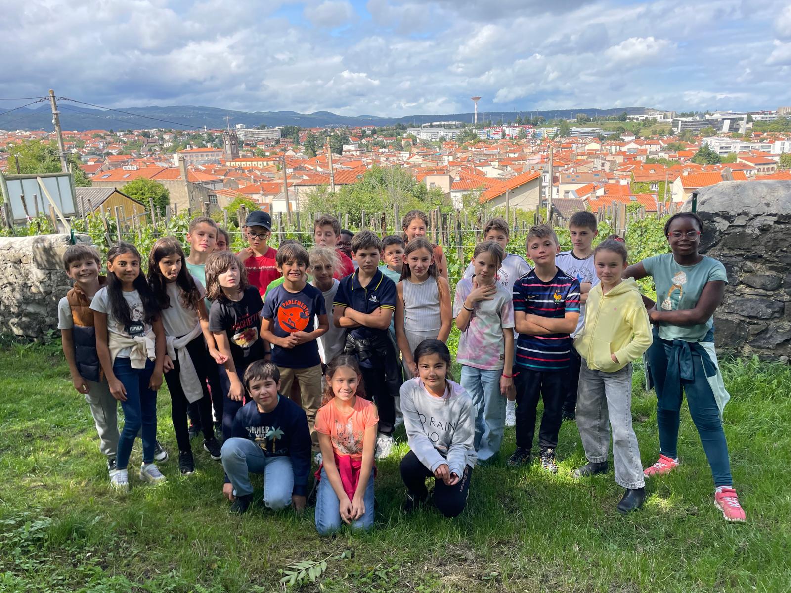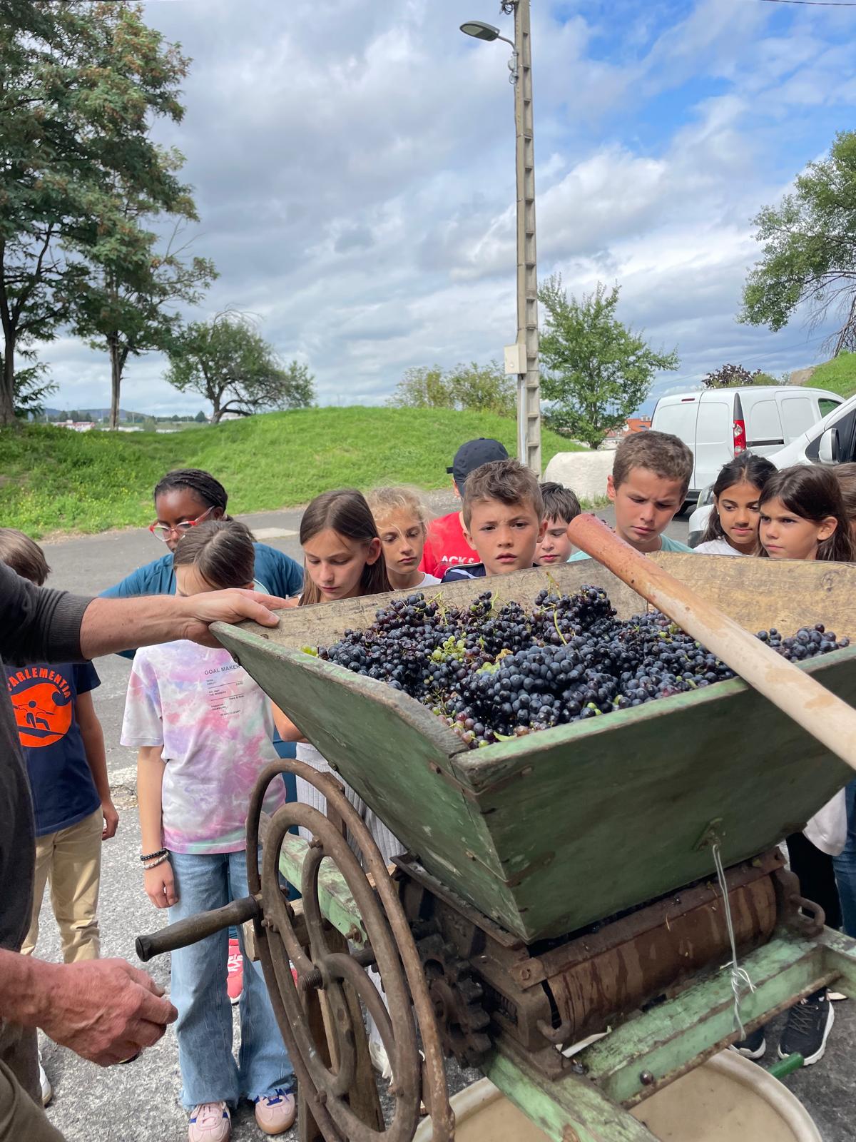 Découverte pour les 2 classes de CM2 du patrimoine viticole d’Aubière avec une dégustation de jus de raisin pour terminer